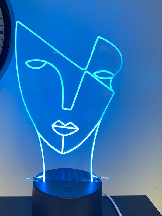 Abstract Face Art One line drawing 3D Illusion Smart APP Control 3D Illusion Night Light Bluetooth,Music,7&16M Color Mobile App,Made in UK
